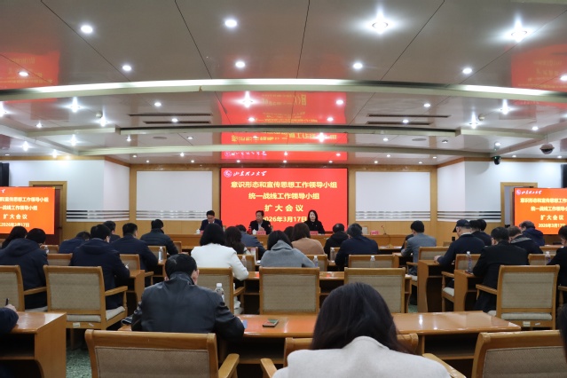 3月17日下午,学校在鸿远楼一楼报告厅召开意识形态和宣传思想工作领导小组(扩大)会议暨统一战线工作领导小组(扩大)会议,深入学习贯彻习近平文化思想和习近平总书记关于做好新时代党的统一战线工作的重要思想,传达上级有关会议文件精神,对进一步做好学校意识形态和宣传思想文化工作、统战工作作出部署安排。